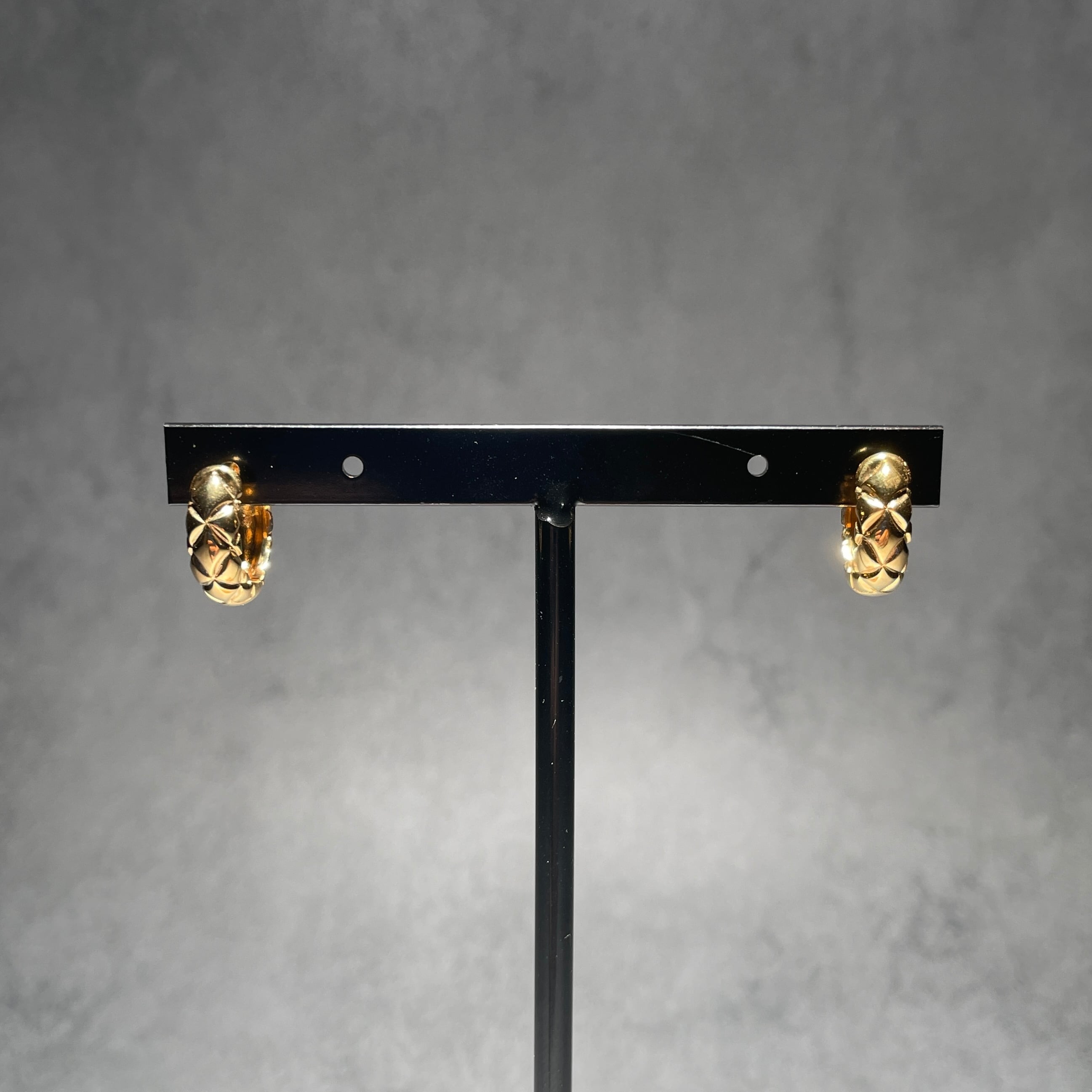 キルティングデザインが施されたLE-001 LyL Quilting Earrings(キルチングピアス)。独特のステッチ感が魅力的で、ヴィンテージな雰囲気も漂います。耳元で揺れることで、女性らしさや品格を引き立てます。