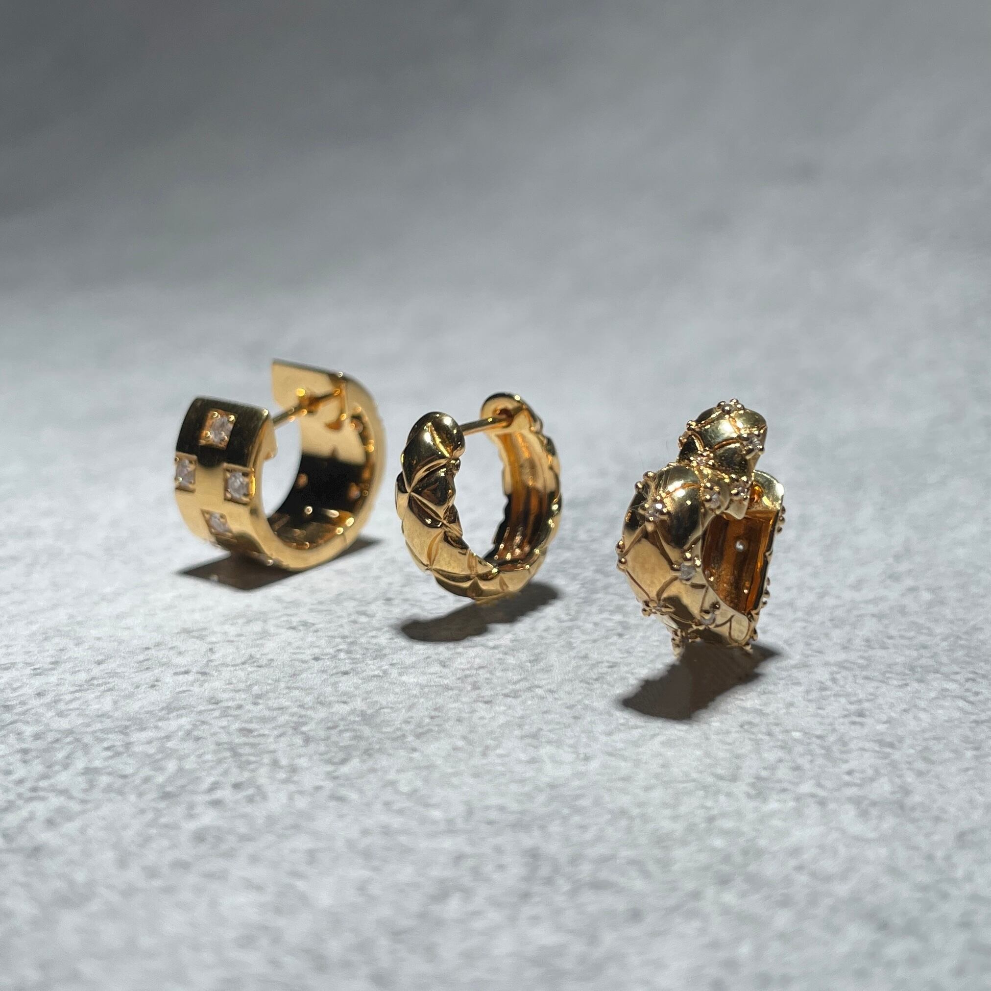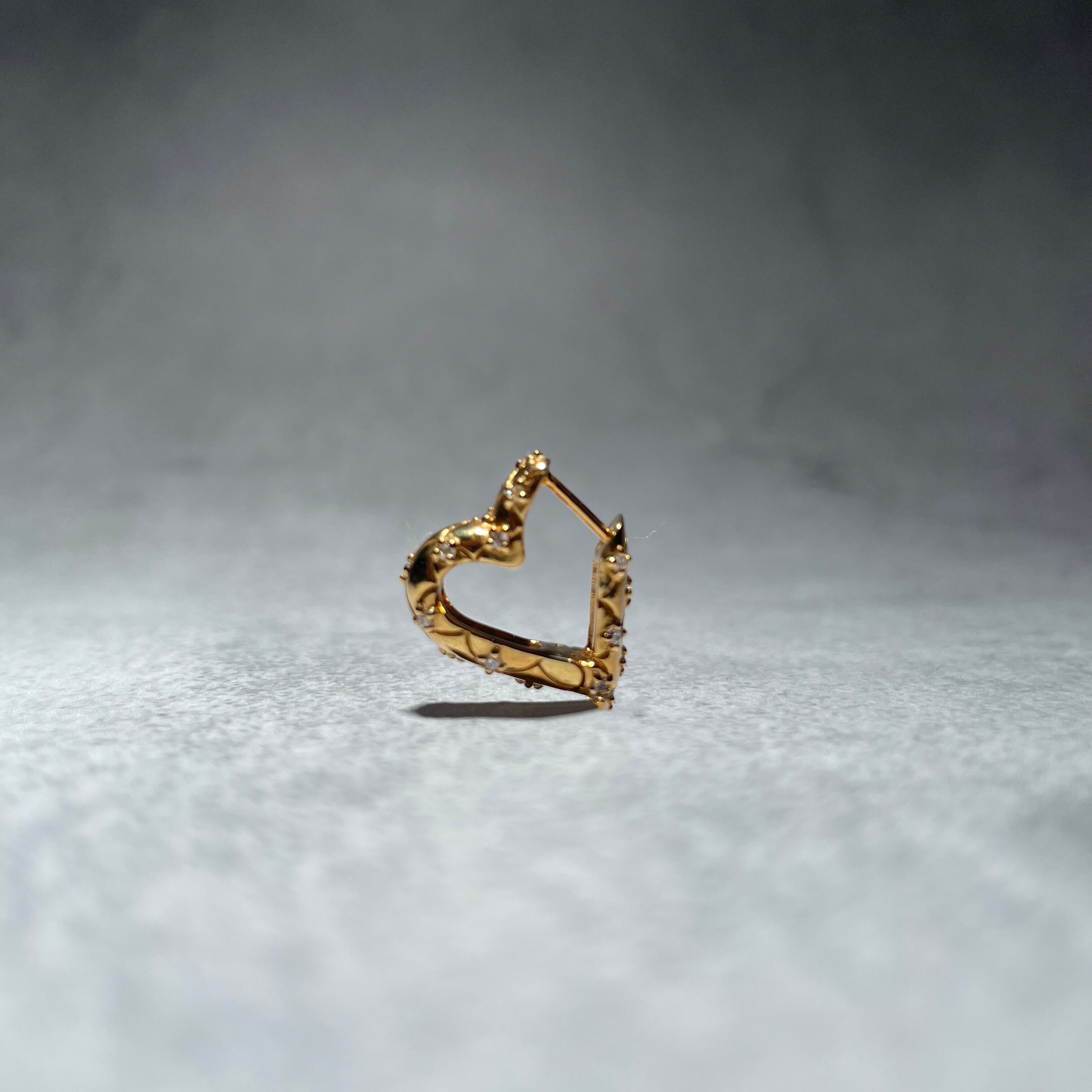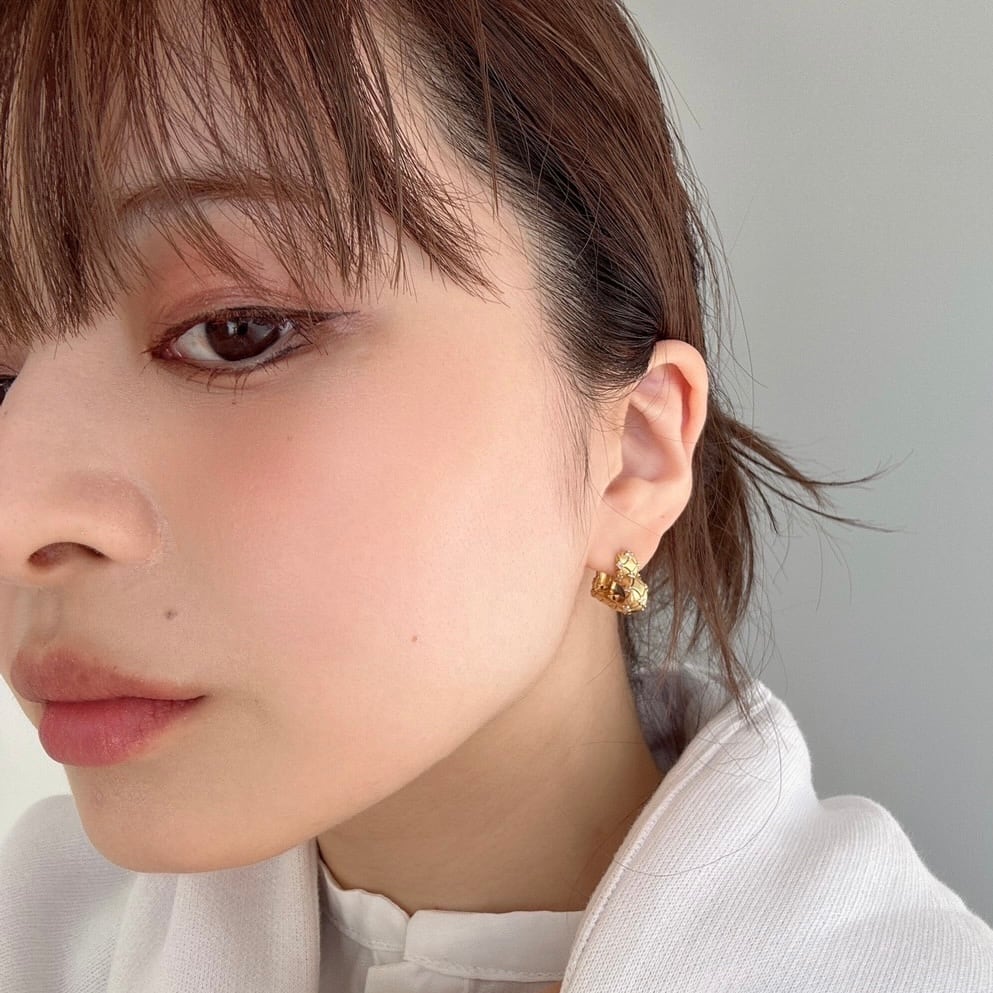 ハートシェイプにキルティングデザインが施されたLE-002 LyL Quilting Earrings(キルティングピアス)。正面からはシンプルな見た目ですが、サイドから見るとハートシェイプが魅力的で、ヴィンテージな雰囲気も漂います。耳元で揺れることで、華やかさと可愛らしさを引き立てます。
